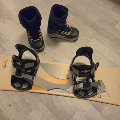Säljes snowboard set för barn.