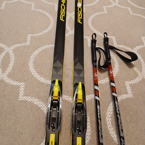 Hakusessa sukset noin 170cm, monot 38 tai 39 ja sauvat. Ei tarvitse olla olympiatason eli suht edullinen paketti.