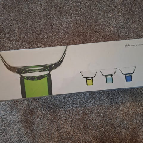 Sagaform lasiset shottilasit eri väreissä. Setti sisältää neljä lasia, jotka ovat väriltään oranssi, vihreä, pinkki ja sininen.
