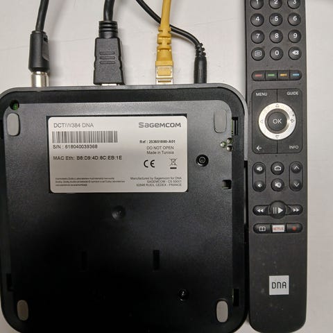 Kaukosäädin, HDMI ja ethernet kaapelit ja pikaopas