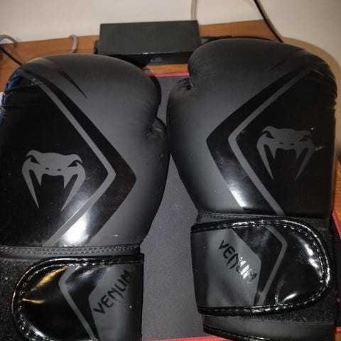 Pari vuotta sitten ostetut ja muutaman kerran käytetyt kulta mustat topten merkkiset nyrkkeilyhanskat.