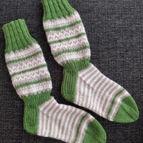 Villasukat joissa väri kauniisti vaihtuu,helmineuletta.
