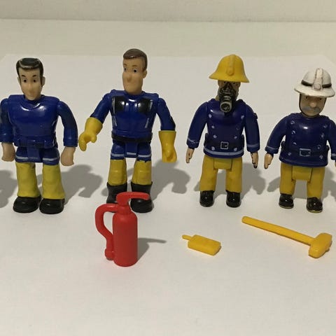 Myydään 8kpl Palomies Sami hahmoja. Hahmot eivät ole aitoja ja ovat hassun näköisiä. Hahmoissa on myös värikulumaa. Tomilta ja Terolta puuttuu hattu ja Elviksen hatusta puuttuu takaa pala.