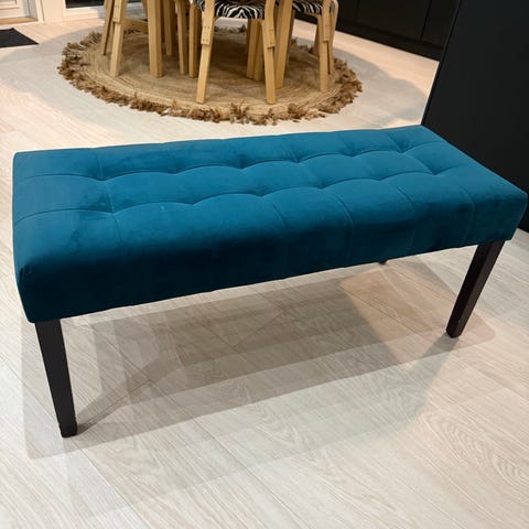 Jysk penkki harmaalla kankaalla ja puujaloilla. Penkki soveltuu esimerkiksi eteiseen tai makuuhuoneeseen istumapaikaksi tai lisätilaksi.
