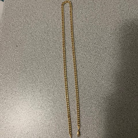 Siisti ja hyväkuntoinen. 14k 585 kultaa. Paino 2,17 g. Pituus 44 cm.