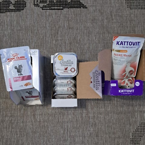Omalle kisulle ei maistu niin myyn pois. 0.50€ per pussi. Lohen makuisia eniten. Muutama kanan makuinen