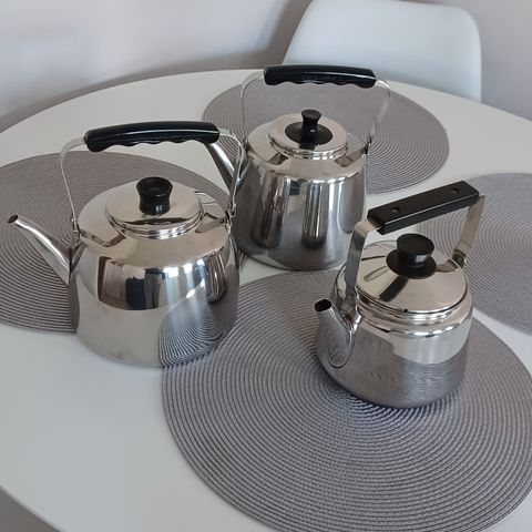 4 kpl Ruostumaton teräs kahvipannu. Lähes uuden veroisia. 1x 1,5 l ja 3x 2l. 10€/kpl