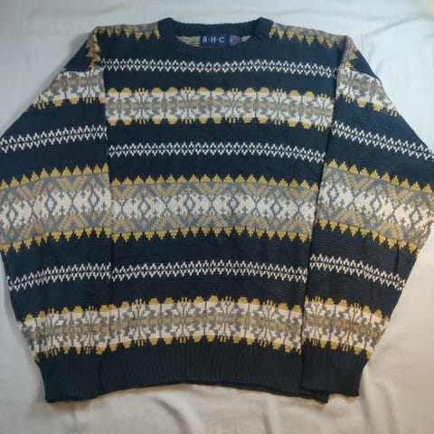 Lapussa lukee M, mutta neule on todella reilua mitoitusta. Mittojen perusteella vastaa nykyaikaista XL tai XXL -kokoa (tai reilua oversized-istuvuutta pienemmälle koolle). Tarkista mitat.