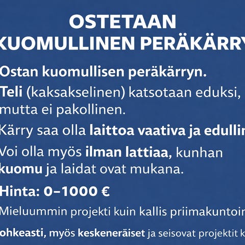 Ostetaan jarrullinen kuomukärry