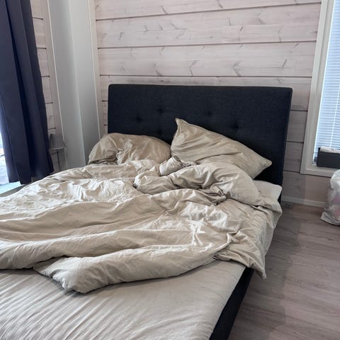 Ikean Tufjord sängynrunko ja Luröy sälepohjat.