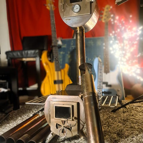 Uusi Telttakamina.piippu osina kaminan sisällä