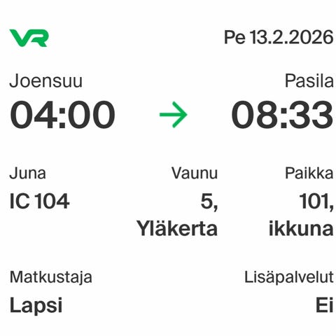Helsinki-Joensuu junalippu