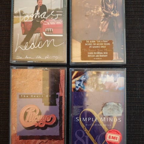 Kaksi pakettia avaamattomia. Kummassakin 4 kasettia. Hyvää musiikkia.
