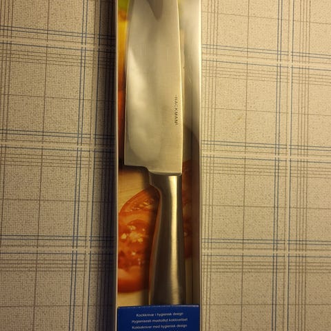 Valkoharmaa kahvallinen kakkiveitsi, merkiltään IKEA hinta 1€