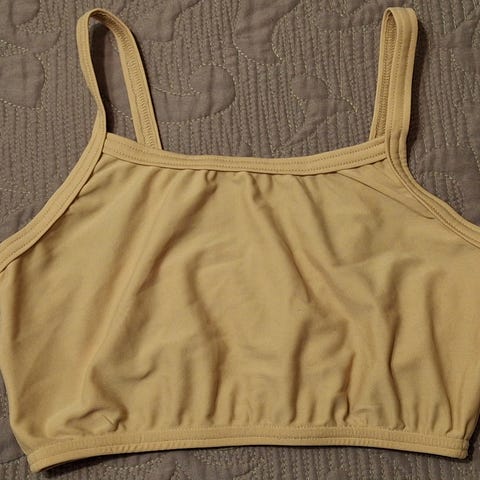 Myydään kuvanmukainen siistikuntoinen tanssin tai voimistelun toppi. Neonkeltainen. Pieni n. 1 cm, purkauma olkaimen päässä, ei vaikuta käyttöön, kts. kuvasuurennos. Piruetti. Lycra. Koko 150-160 cm. Hinta 15 e.