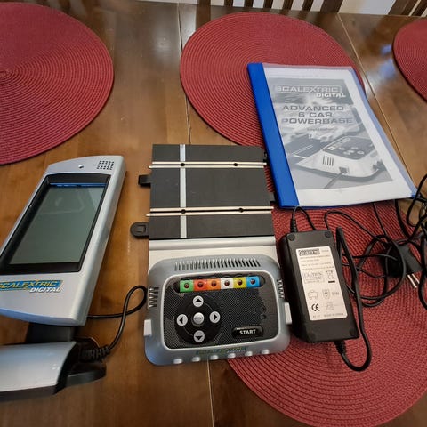 Variaatioita rataan niin paljon kuin mielikuvitusta. Lisäosia vielä laatikossa. Kuvan rata noin 9m. Vie tilaa 255cm*245cm* - isomman tai pienemmän voi rataosista rakentaa. Mukaan 2 ohjaista, 6 autoa (formula, rally, rata), kierros/aikalaskin, 2 katsomoa, varikkopilttuu, paloasema autoineen mikrofonilla ja kaiuttimella, parkkitalo autoinen. Täydellä kaasulla et pysy radalla, joten vaatii taitoakin.