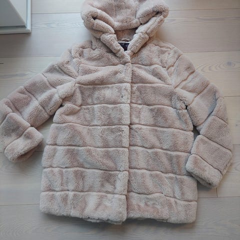 Juhlapuvun kanssa tyylikäs valkoinen keinoturkis jakku. Hakaskiinnitys. Erityisen hyvä vanhojentanssipuvun janssa. S/ M