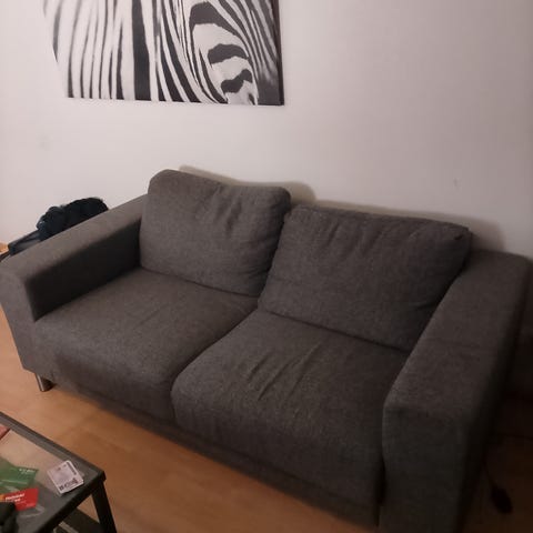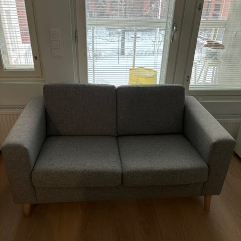 Myydään hyväkuntoinen kahden hengen sohva Alcantara kankaalla.