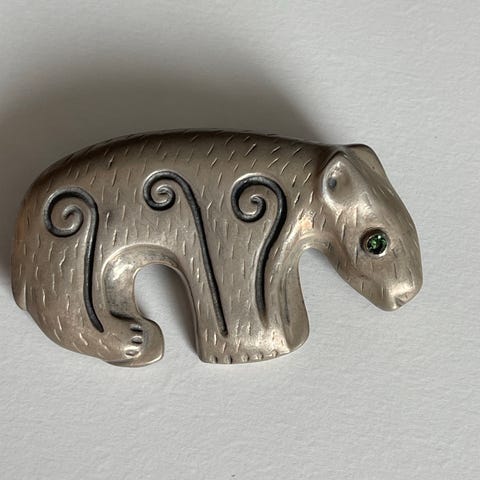 Kalevala korun iso kalevan karhu rintasolki / rintakoru, hopeaa