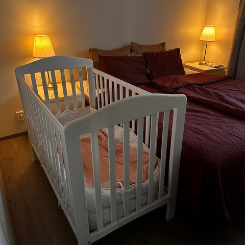 The crib and other stuffs are in excellent condition like new. We bought everything new from IKEA. The crib comes with two bed sheets, a mattress, a pee soaking wrapper, a blanket with cover and a storage that could be hanged with the crib for accessories. If you need more pictures, send me message through this platform.