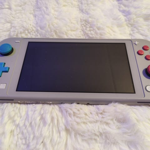 hyvässä kunnossa oleva nintendo switch lite konsoli ja pokemon peli.