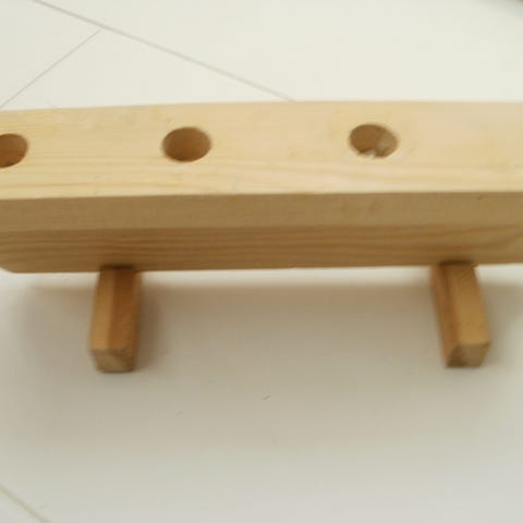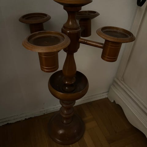 Luke Färg & Form kynttilänjalka, jossa keskiosa punertavaa puuta. Korkeus noin 17,8cm.