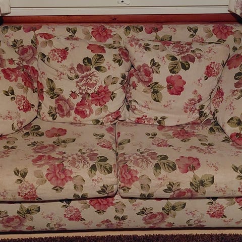 Pääty irrotettu, jotta mahtuu huoneen ovesta ulos.