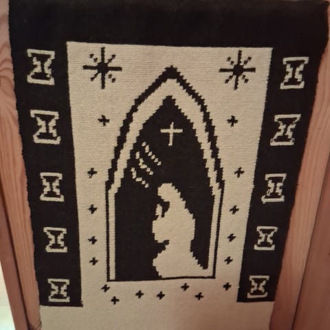 Vanha musta/luonnonvalkoinen täkänä. Kaunis aihe.