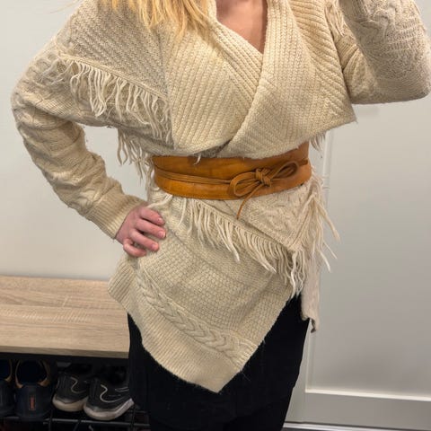 H&M punainen lyhyt neuletakki kokoa M, palmikot nappilistan vieressä. Vajaamittaiset hihat. Villa - akryyli sekoitetta.