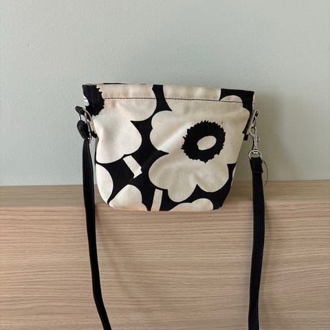 Marimekko Mono Mini Crossbody Solid -olkalaukku. Valkaisemattomasta paksusta luomupuuvillasta valmistetussa olkalaukussa on säädettävä olkahihna, vetoketjusuljenta sekä avoin ulkotasku. Olkalaukun kangas on painettu Helsingissä. Uusi, laput kiinni. Ohv.135e