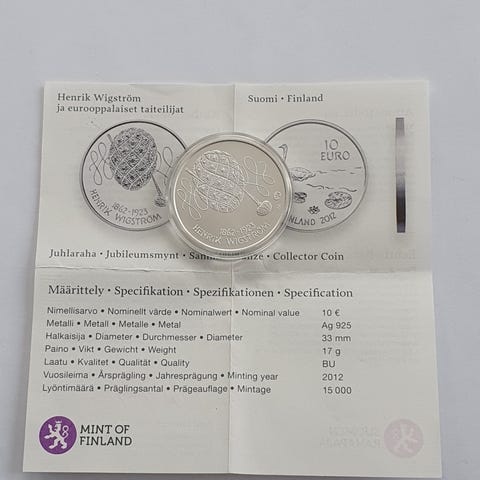 Hopea 10 euro 2012 Henrik Wigström ja eurooppalaiset taitelijat