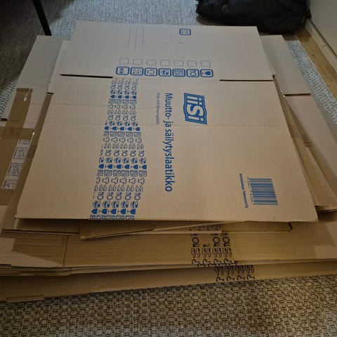 Ainakin 10kpl(10-20kpl) rustan large laatikoita. Muutama hieman revennyt kahvan kohdalta, saa mukaan halutessaan. Haku mahdollisimman pian katajanokalta.