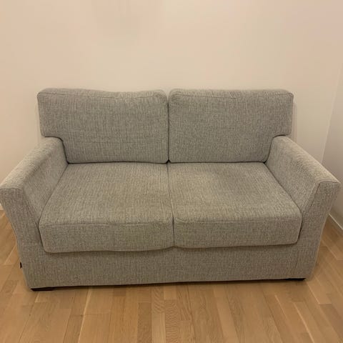 Ostettu Vekestä 11/2023 eli reilu pari vuotta ikää. Kuitenkin siistissä kunnossa ja toimii hyvin. Normaalia pientä kulumista ja joitain langannousuja. Vuodeosassa yksi isompi langannousu (viimeisessä kuvassa), joka jää piiloon kun sohva ei ole levitetty.