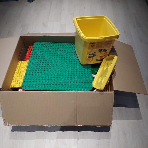 Myydään iso kasa dubloja. Mukana ajoneuvoja, lentokone, eläimiä, ukkoja, linna, huonekaluja, alustoja ja peruspalikoita + 4kpl säilytyslaatikoita.