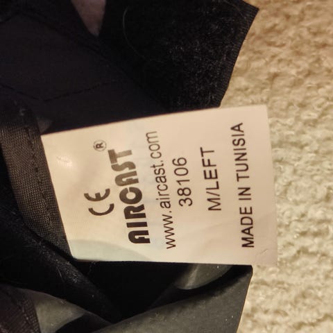 Mehiläisestä ostettu nilkkaortoosi. Tuki on suunniteltu tukemaan nilkkaa ja jalkaa vammojen tai leikkauksen jälkeen. Varustettu säädettävillä tarranauhakiinnityksillä ja ilmapumpuilla, jotka mahdollistavat yksilöllisen tuen ja mukavuuden. Käytetty materiaali on kestävä ja tukee jalkaa tehokkaasti kävelyn aikana. Mukaan saa kaksi hyväkuntoista sisäsukkaa, joiden paksu materiaali tiivistää tuen jalkaa vasten optimaalisesti.