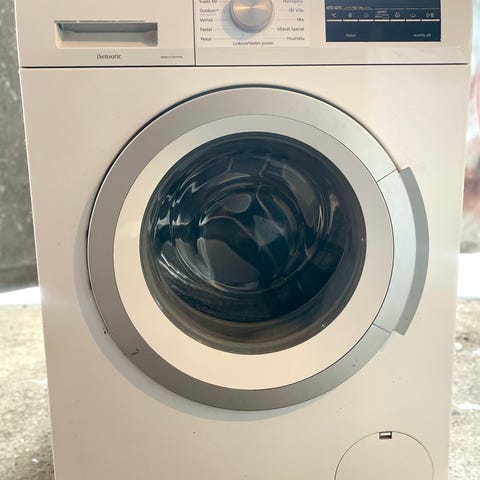Siemens iQ700 edestä täytettävä pesukone, jossa erilaisia pesuohjelmia ja digitaalinen näyttö sekä useita toimintoja kuten varioPerfect ja iQdrive.
