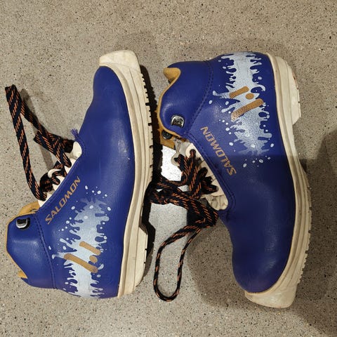 Annetaan kohtuullisessa kunnossa olevat sukset (110 cm), monot (koko 30) ja sauvat.