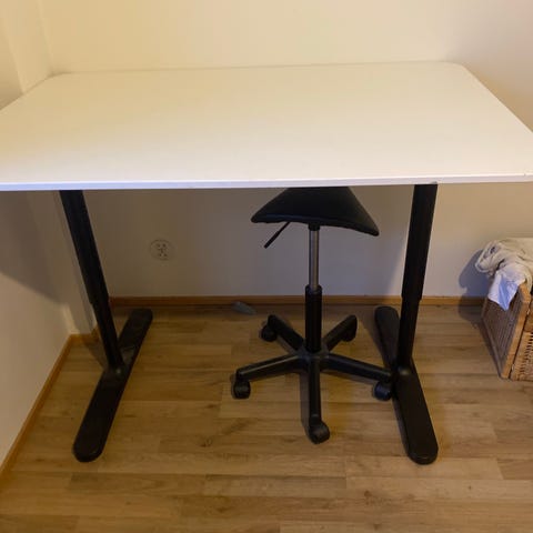 annetaan ikean mittback-työpöydän jalat sekä pöytälevy. pöydän pinta on haljennut hieman muutamasta kohdasta, mutta levyn voi myös helposti vaihtaa.