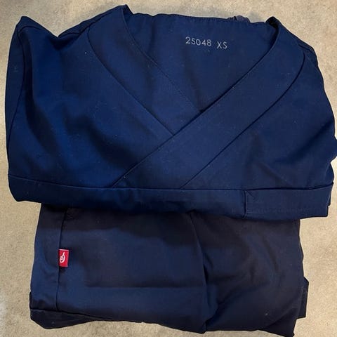 Myydään hoitoalan koulua käyville opiskelijoille tummansiniset labravaatteet koossa XS.