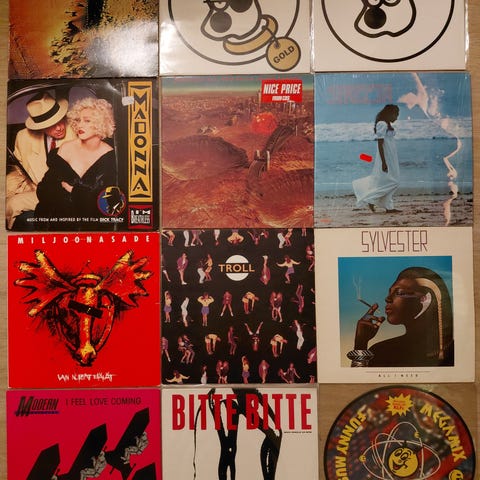Kahden ensimmäisen kuvan levyt 10e kpl. Loput levyt 5e kpl. Postikulut 5e.