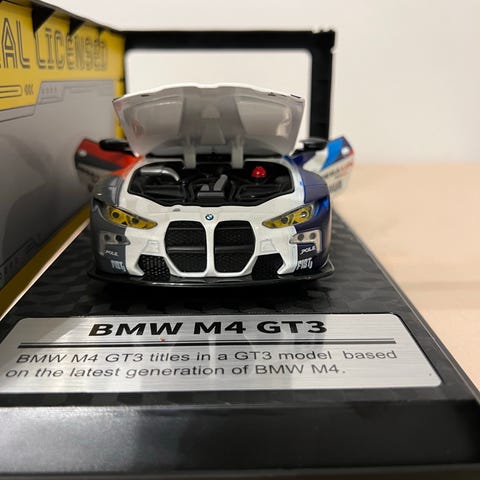 BMW Z4 GT3 pienoismalli, valkoinen väri. Mallissa avattavat ovet ja konepelti sekä takavalot+ etuvalot, jotka syttyvät. Ainoa miinus on takaspoilerin puuttuminen ja pari pientä naarmua. Otettu huomioon hinnassa.