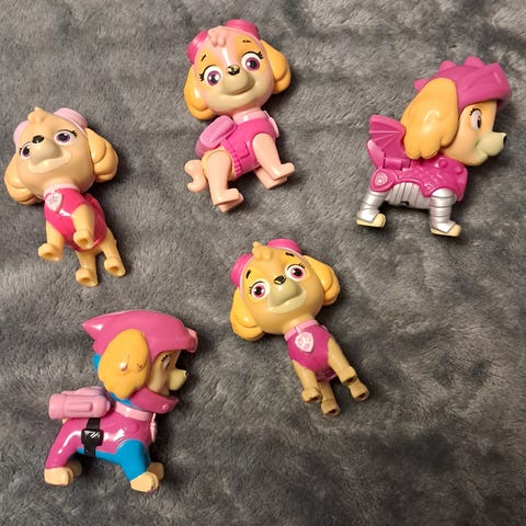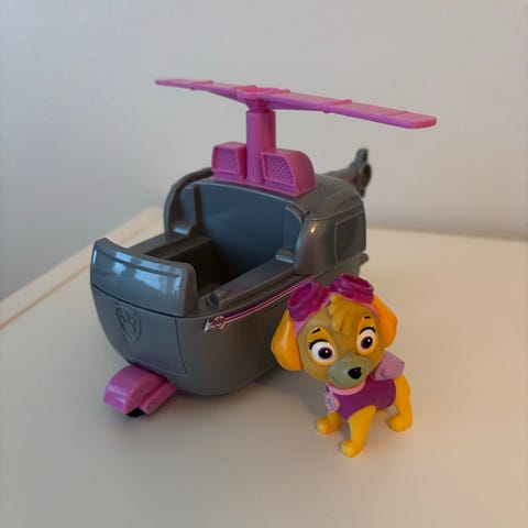 Ryhmä Hau Kaja ja helikopteri, korkeus noin 7,5 cm ja pituus noin 9 cm.
