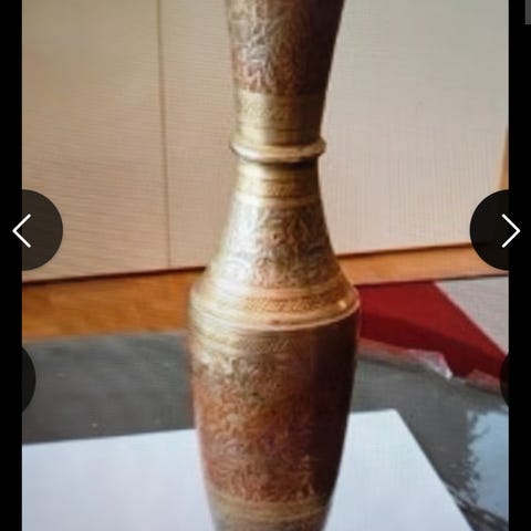 Kaunis kaiverrettu messinkimaljakko. Noin 28cm. Postit ok