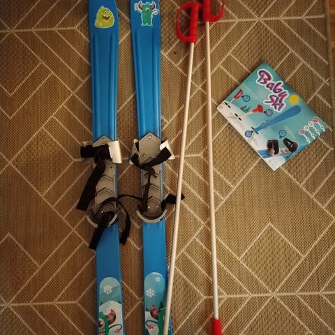 Pienten lasten suksisetti sisältää sukset ja sauvat. Sukset on varustettu säädettävillä siteillä, jotka sopivat eri kokoisiin kenkiin/jalkoihin. Sukset noin 60cm ja sauvat 80cm.