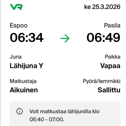 Liput tämän viikon perjantaille ja paluu su.