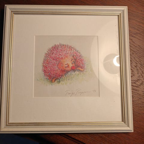 Siili taulu signeeraus Tuija Piepponen -90, kuvan koko 25x26cm.