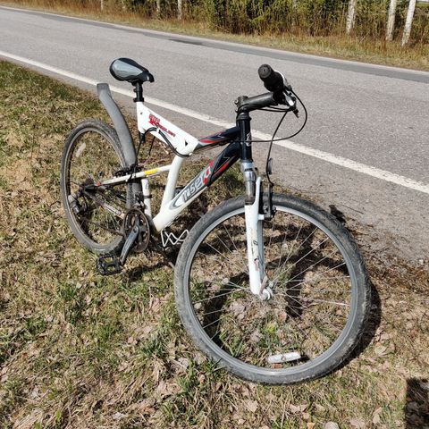 26 tuumanen maastopyörä, takajarru ei toimi ja takavaihtaja ei vaihda vaihteita kunnolla mutta muuten hyvä.