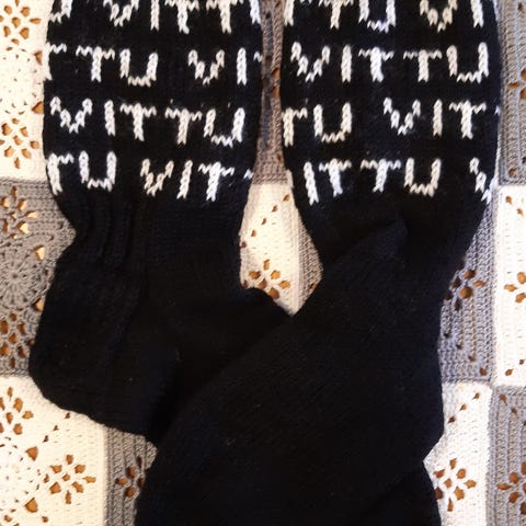 Jos haluaisit muita kokoja tai värejä, voin myös tilauksesta kutoa mieleisesi sukat, säärystimet tai vaikka lapaset.