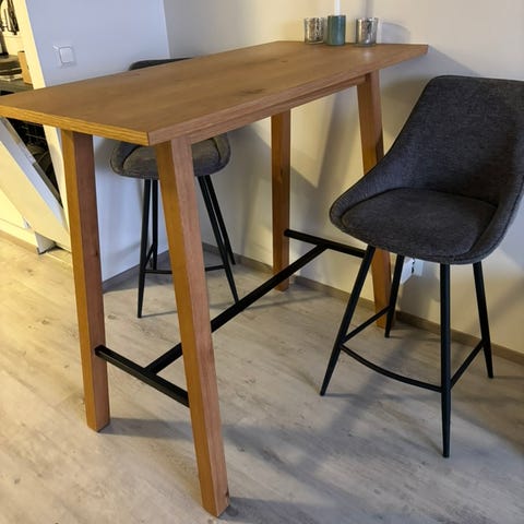 Ihana tammiviiluinen Veken Chara baaripöytä 117x58. Pöytä sopii hyvin ruokailuun tai työpöydäksi. Itsellä ollut käytössä yksiössä ruokapöytänä ja toimi samalla hyvin myös työpöytänä, jonka ääressä pystyi seisoalteen työskentelemään. :)