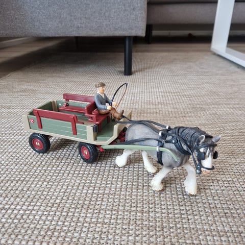 Schleich hevoskärryt ja ruokatarvikkeet.